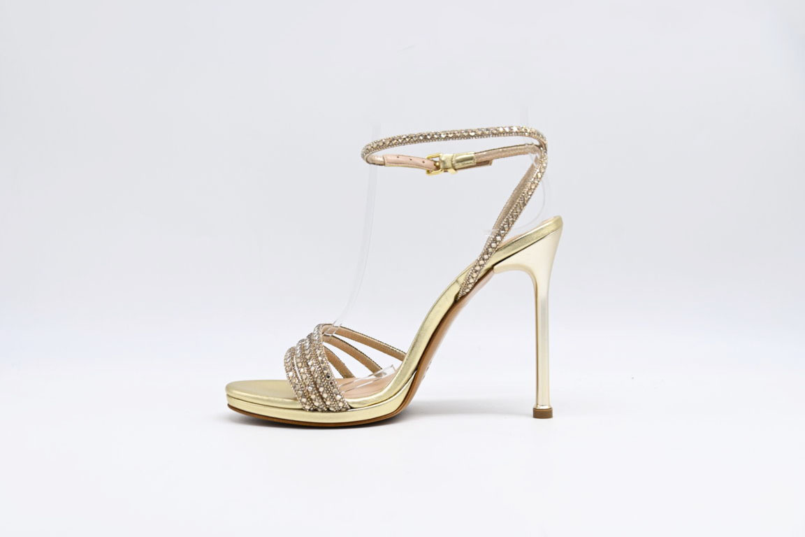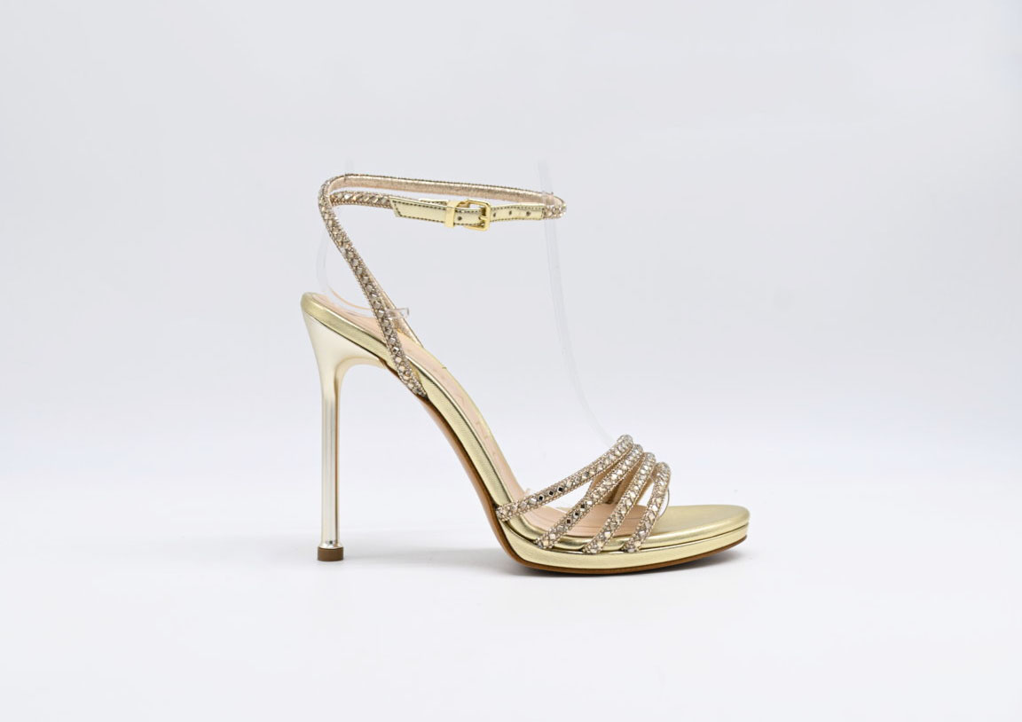 sandalo Albano in pelle platino con glitter