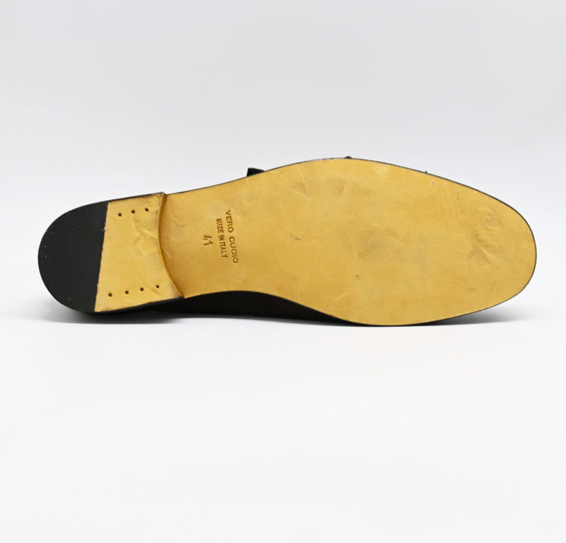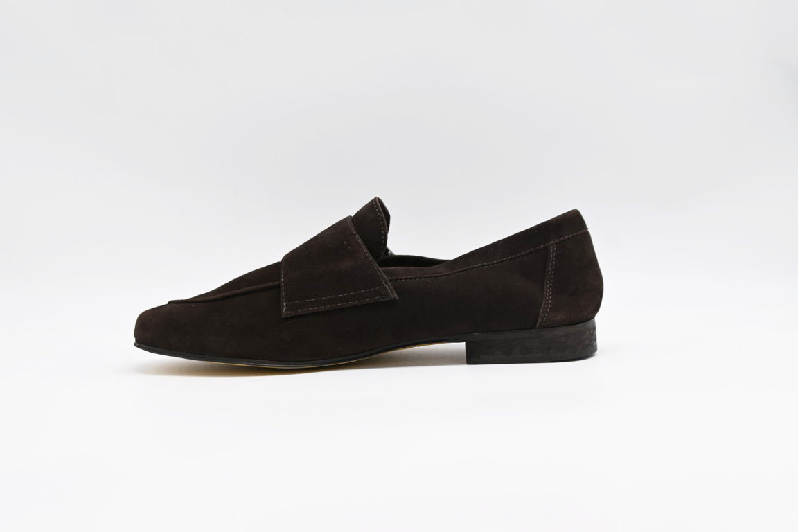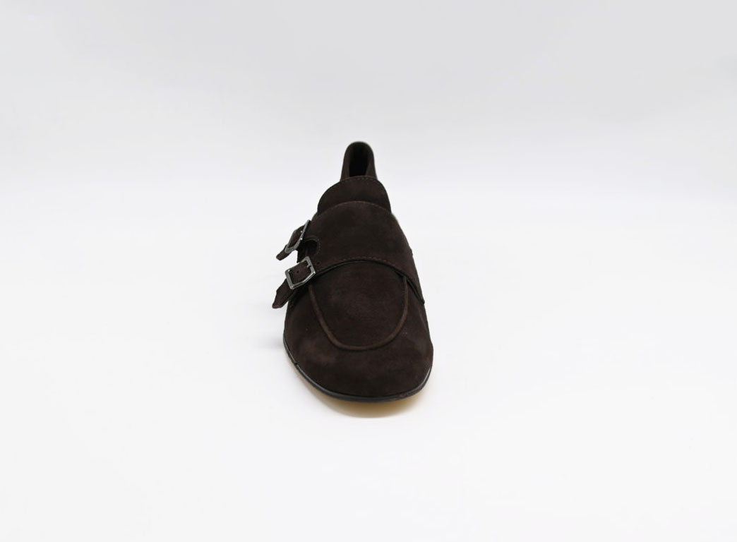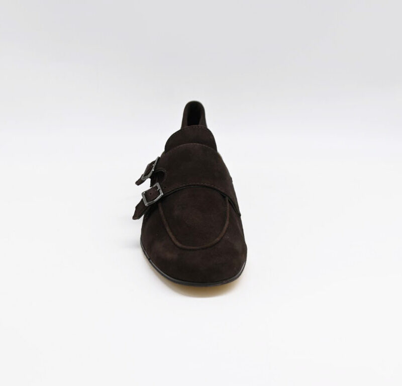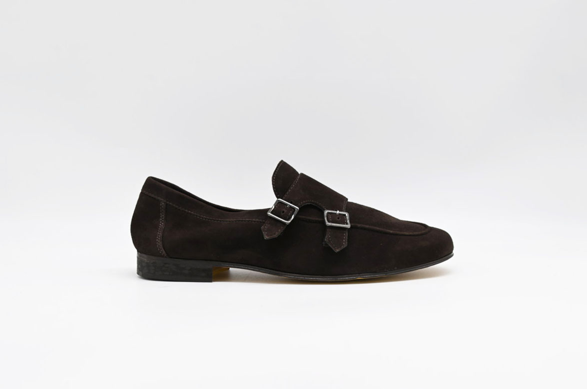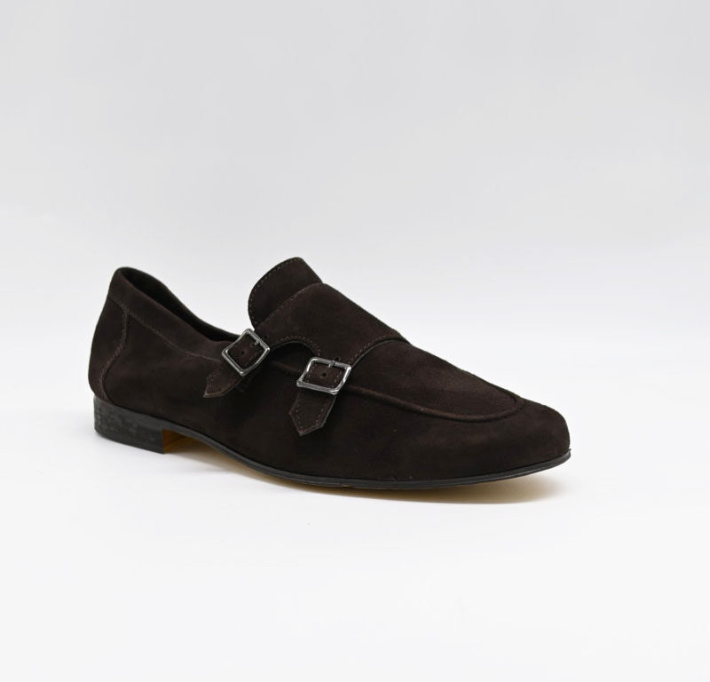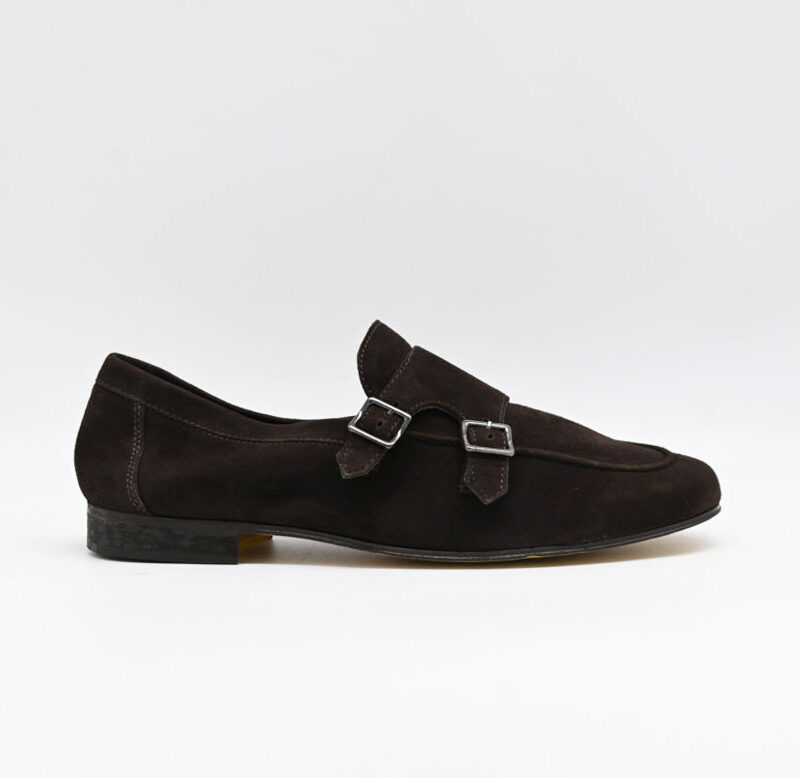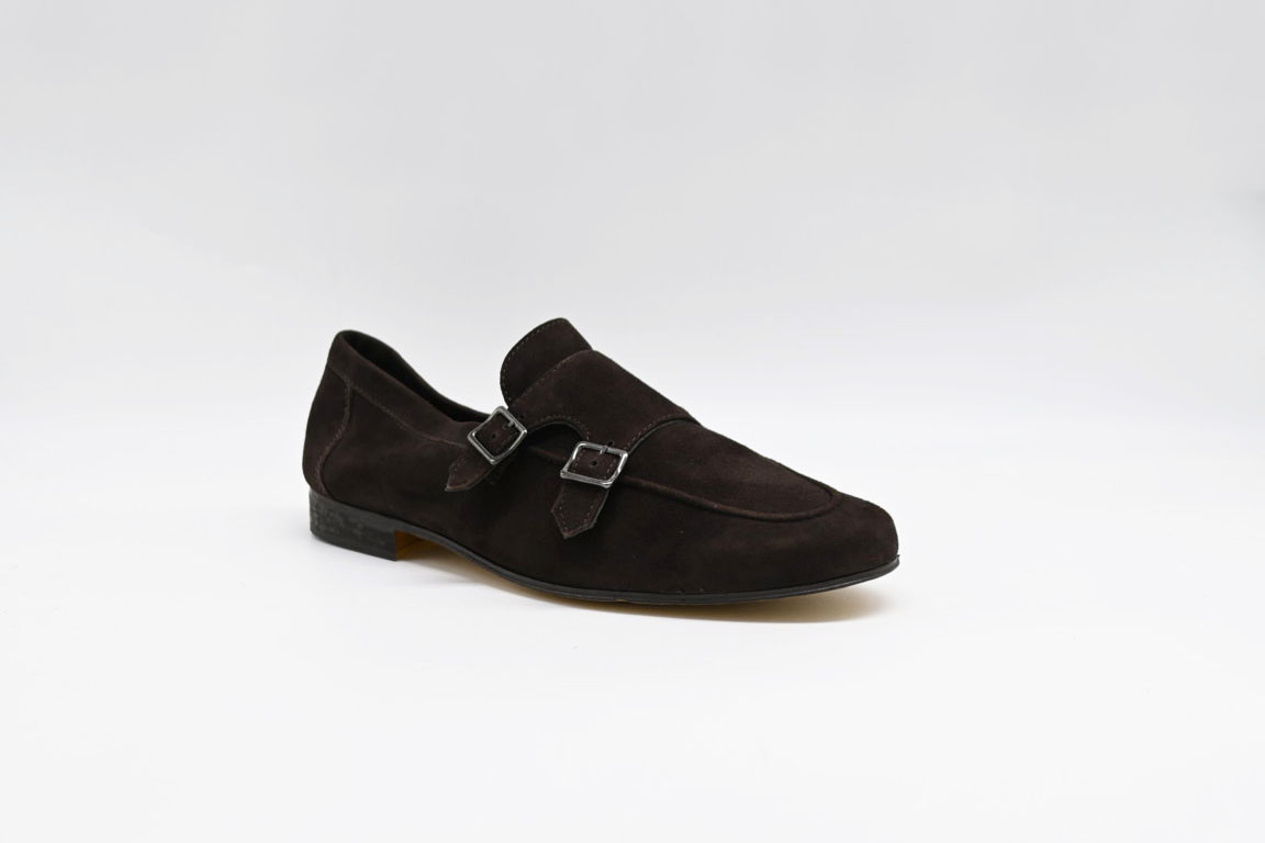 mocassino con doppia fibbia antica cuoieria in morbido camoscio