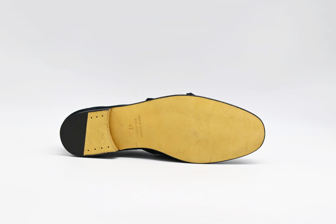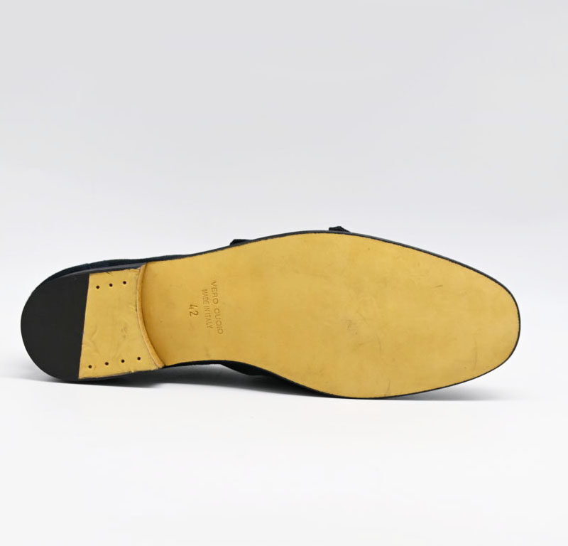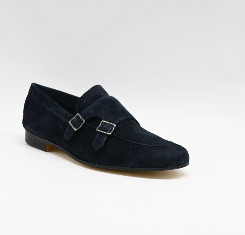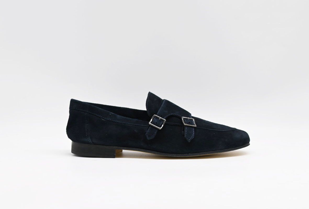 mocassino con doppia fibbia antica cuoieria in morbido camoscio