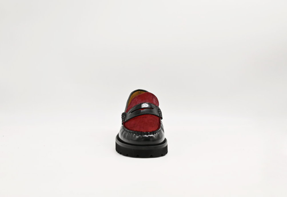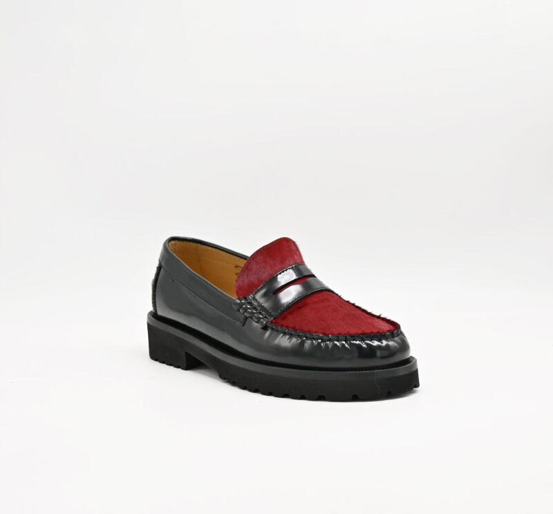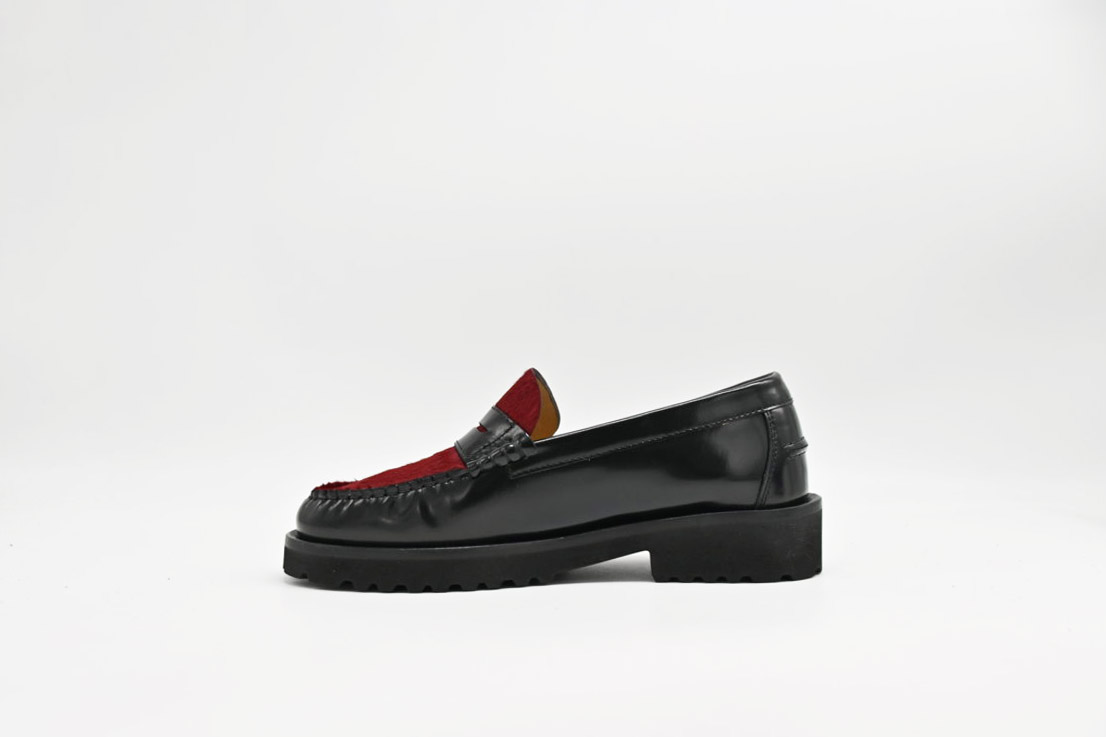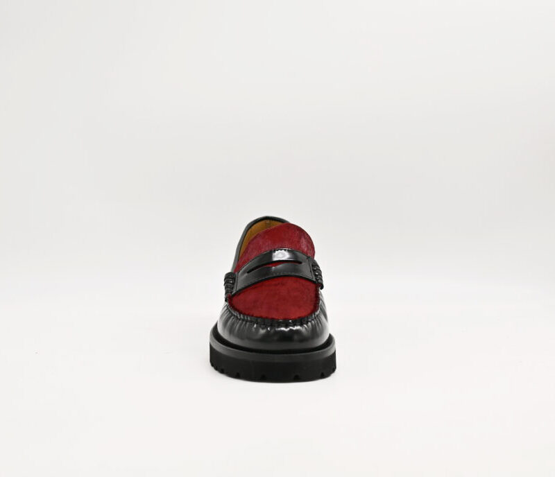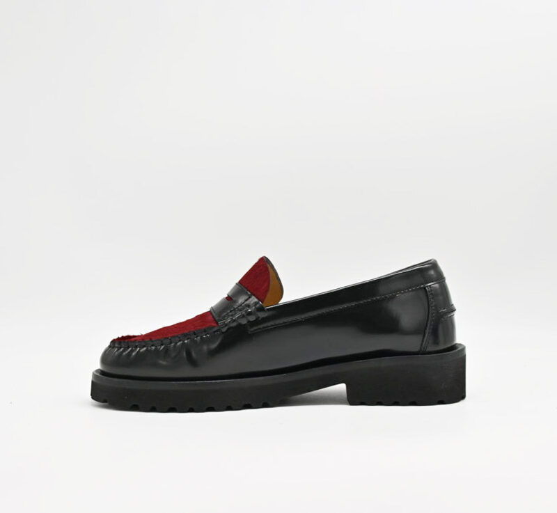 mocassino antica cuoieria in pelle nero e cavallino rosso