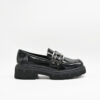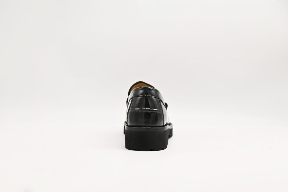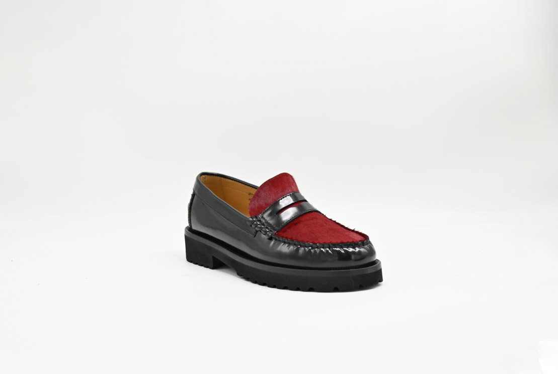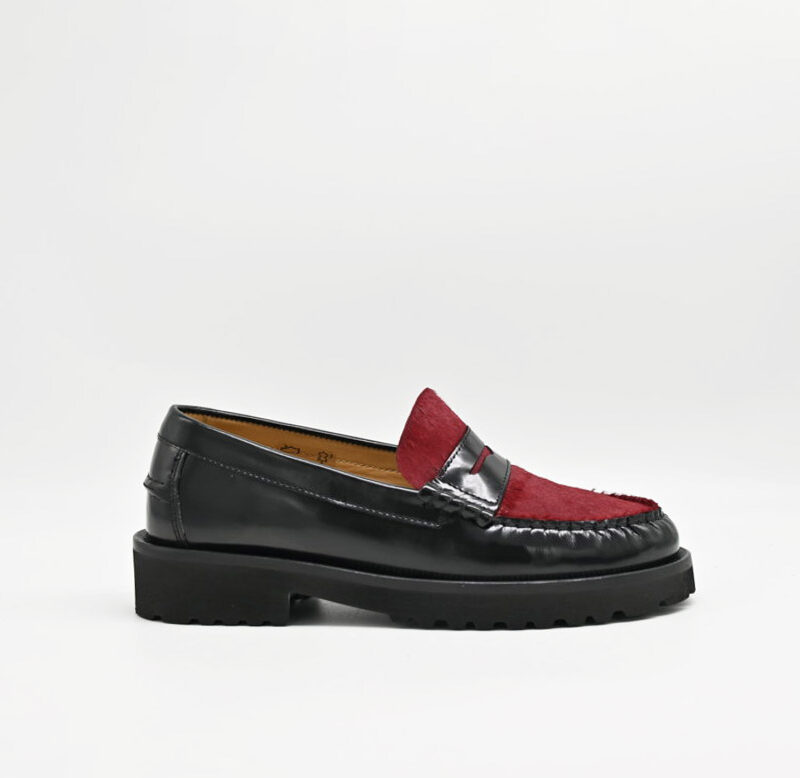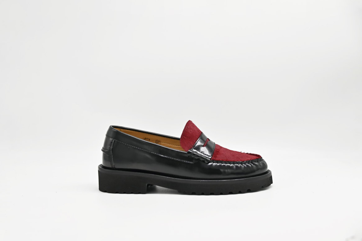 mocassino antica cuoieria in pelle nero e cavallino rosso