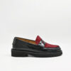 mocassino antica cuoieria in pelle nero e cavallino verde