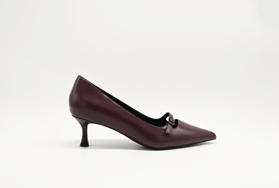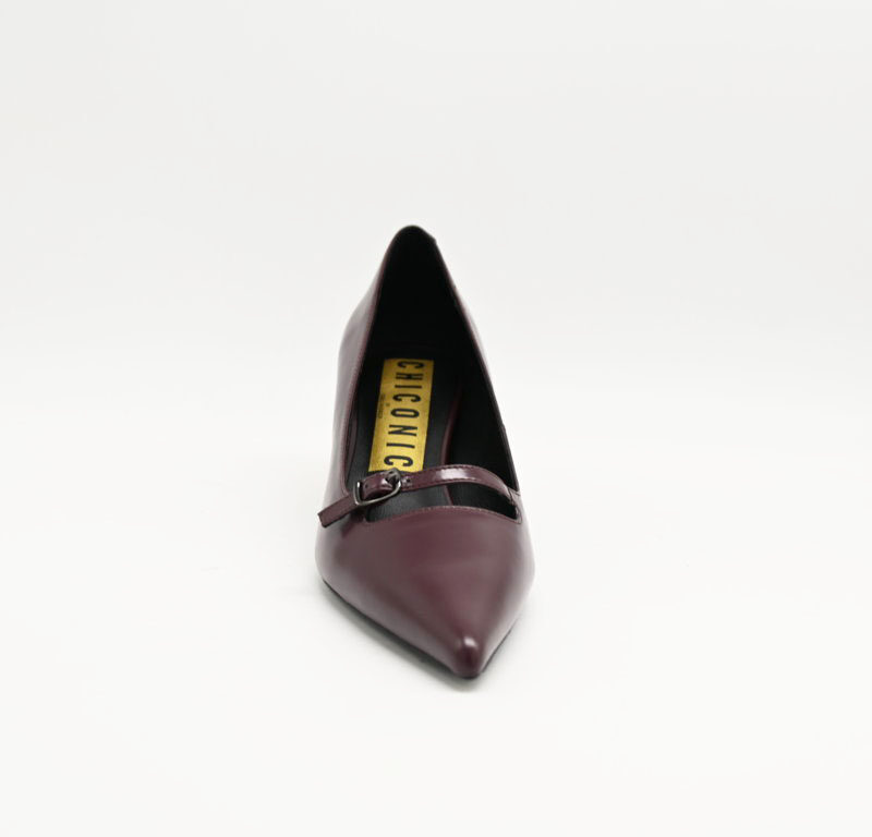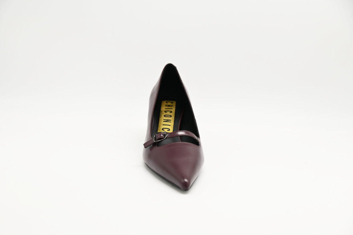 Decoltè chiconic in pelle bordeaux con braccialetto