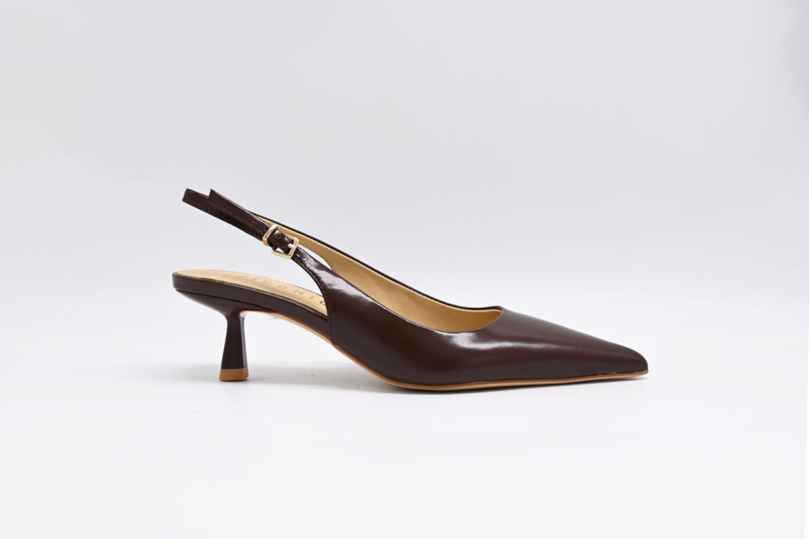 Decoltè chiconic in pelle marrone