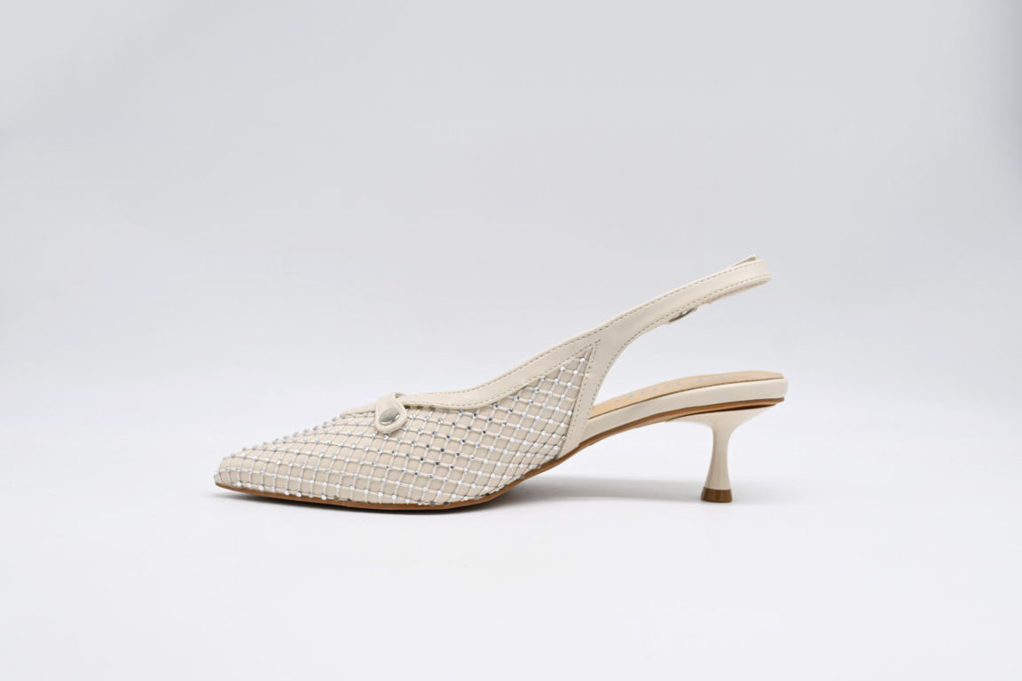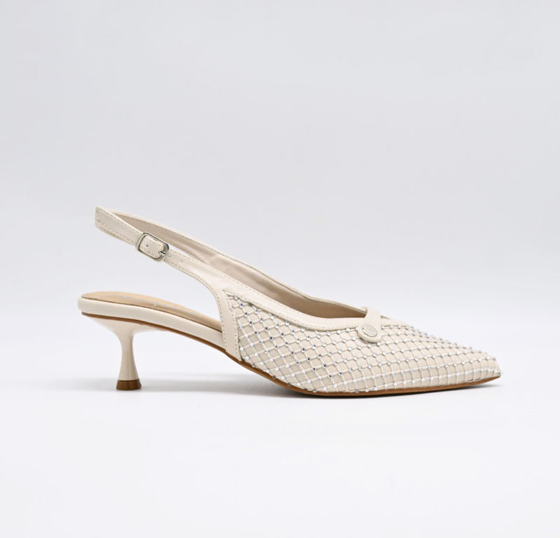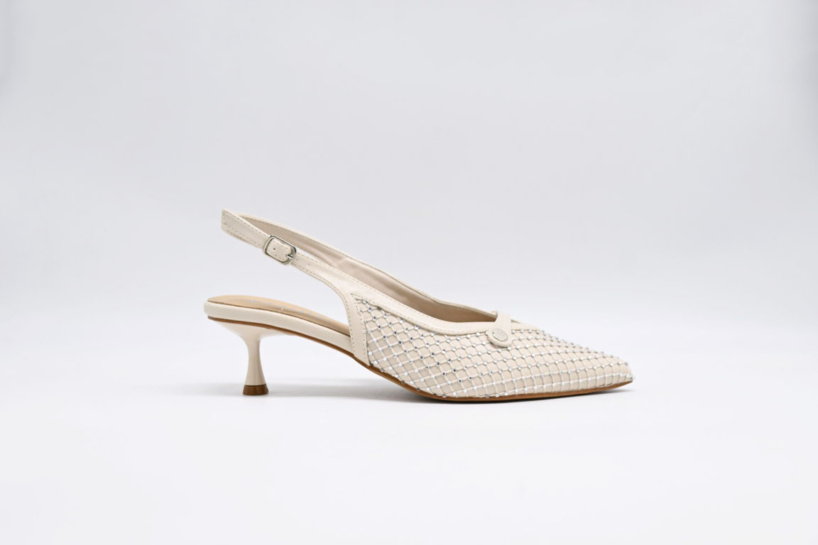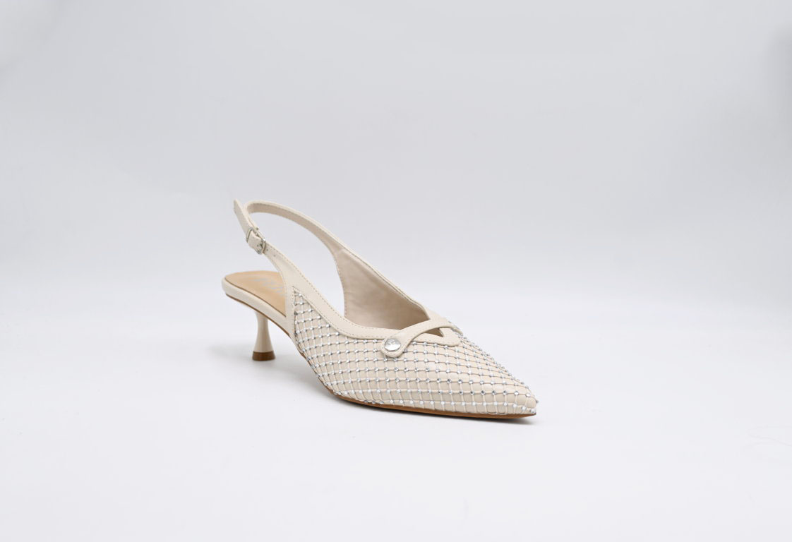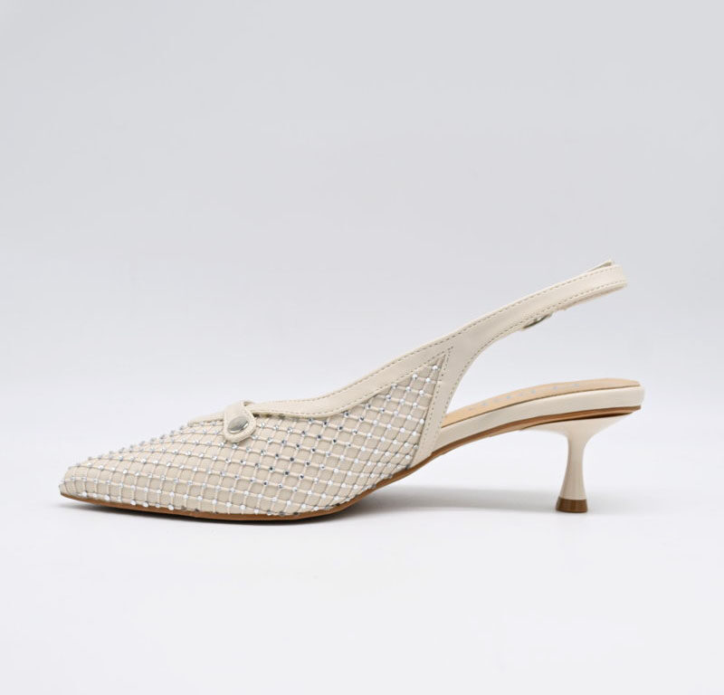 Decoltè FERRE in ecopelle beige con strass