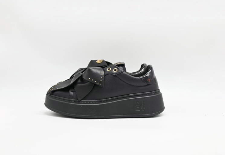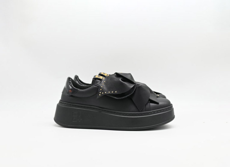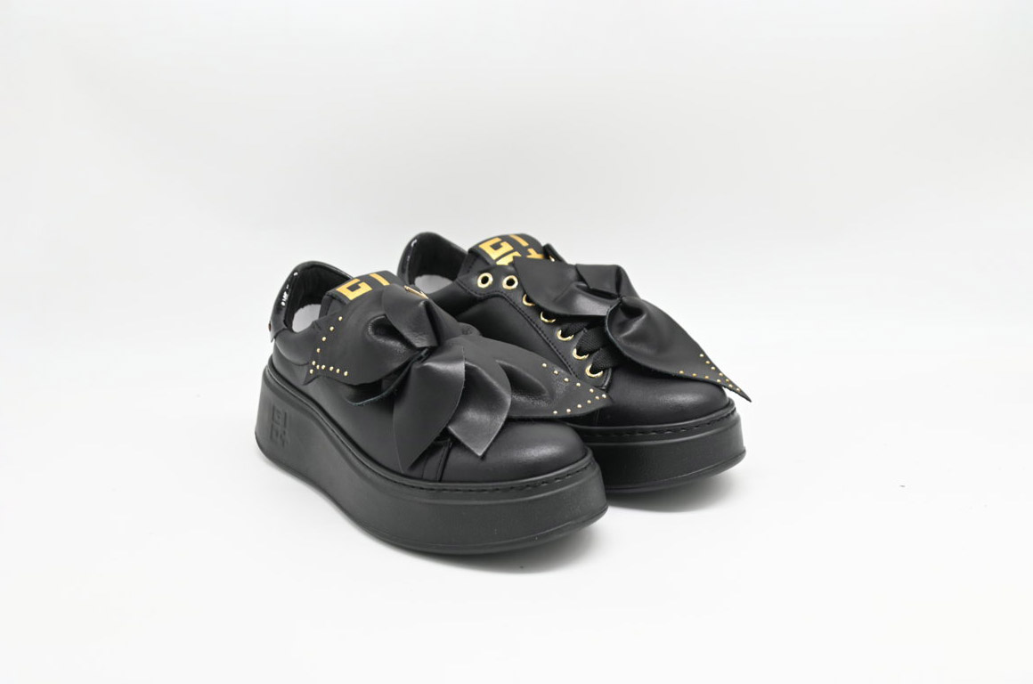 sneakers GIO+ in pelle nero con fiocco in pelle