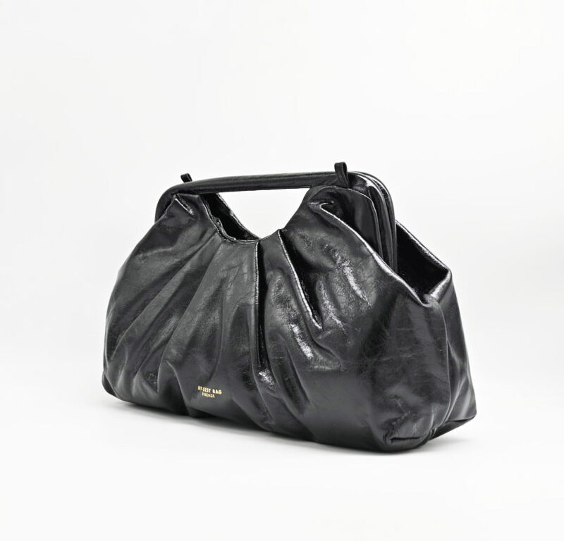 borsa kurt geiger shoreditch envelope è in vernice giallo effetto pelle di anguilla.