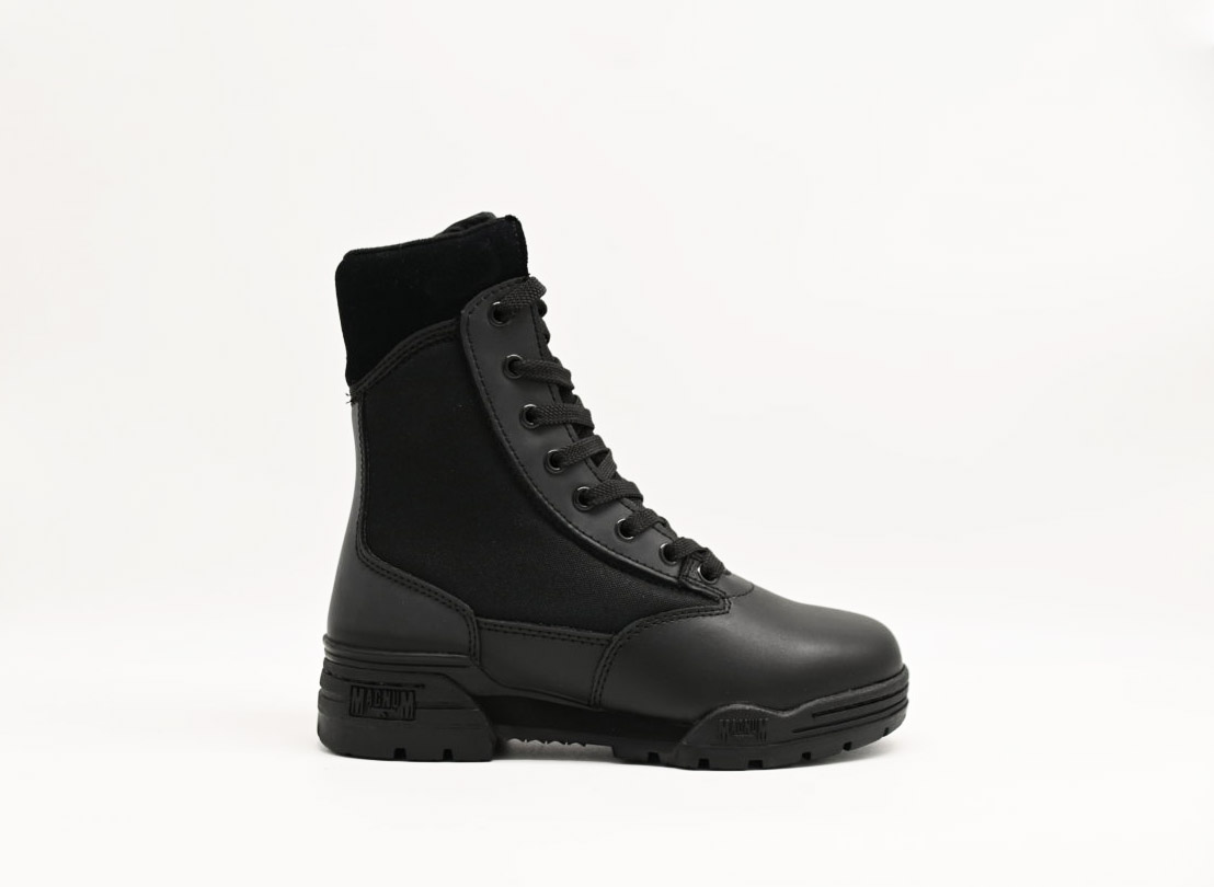 anfibi magnum in pelle nero e tessuto resistente e traspirante, colletto imbottito