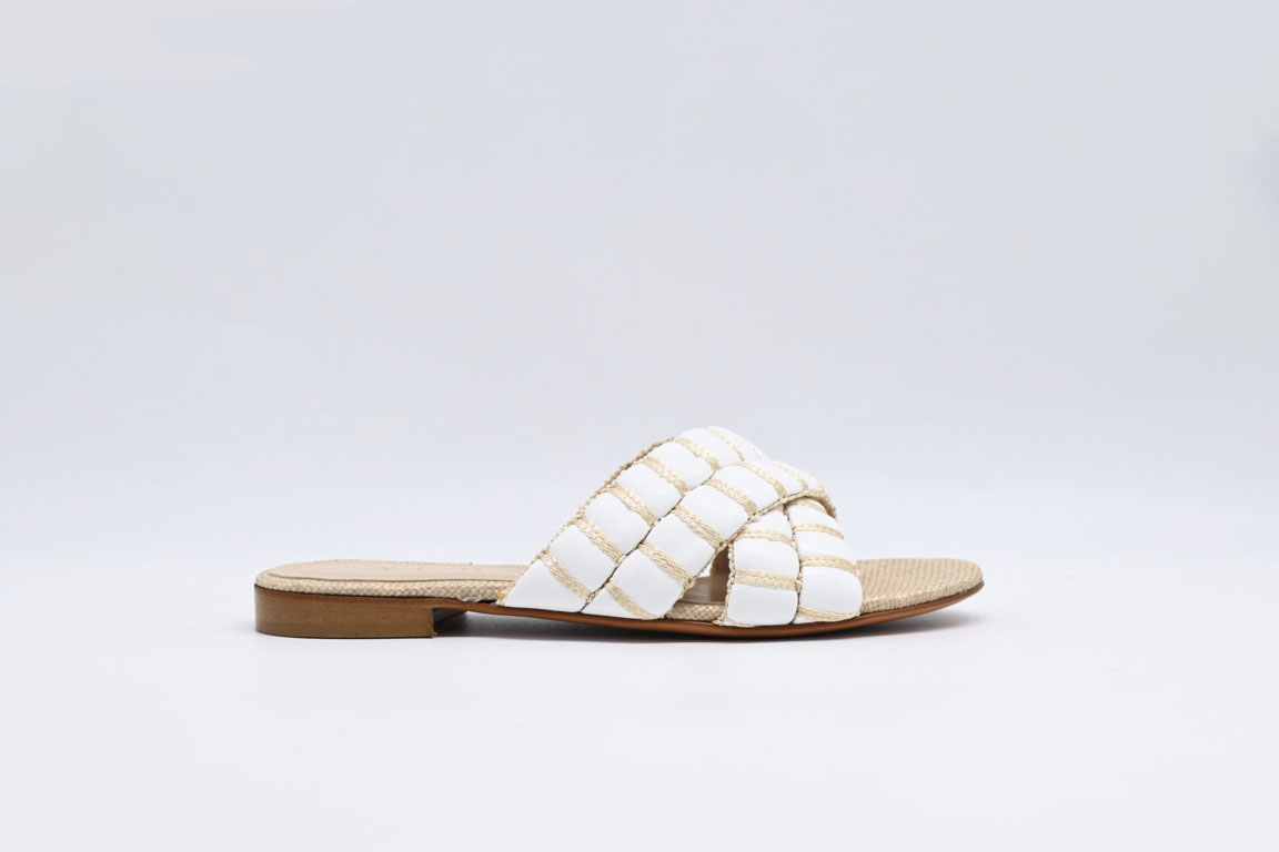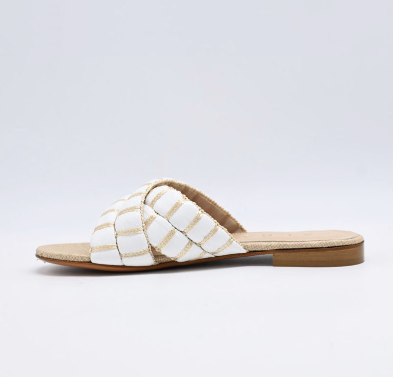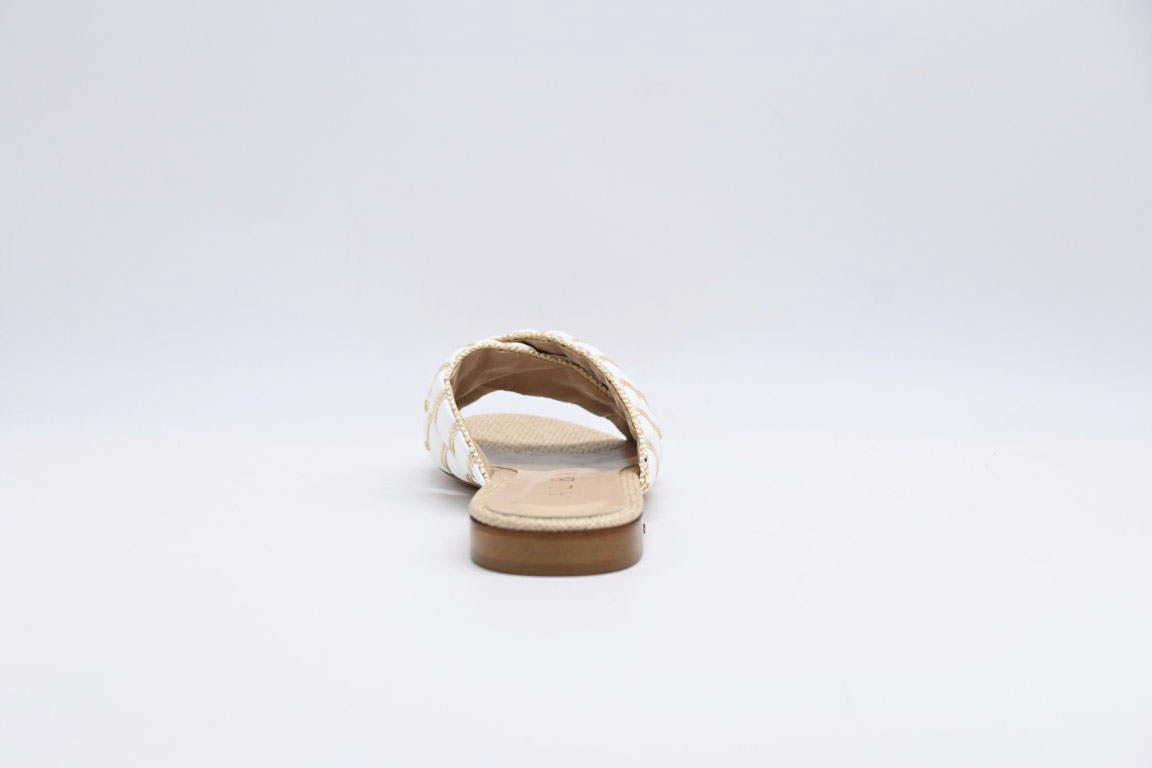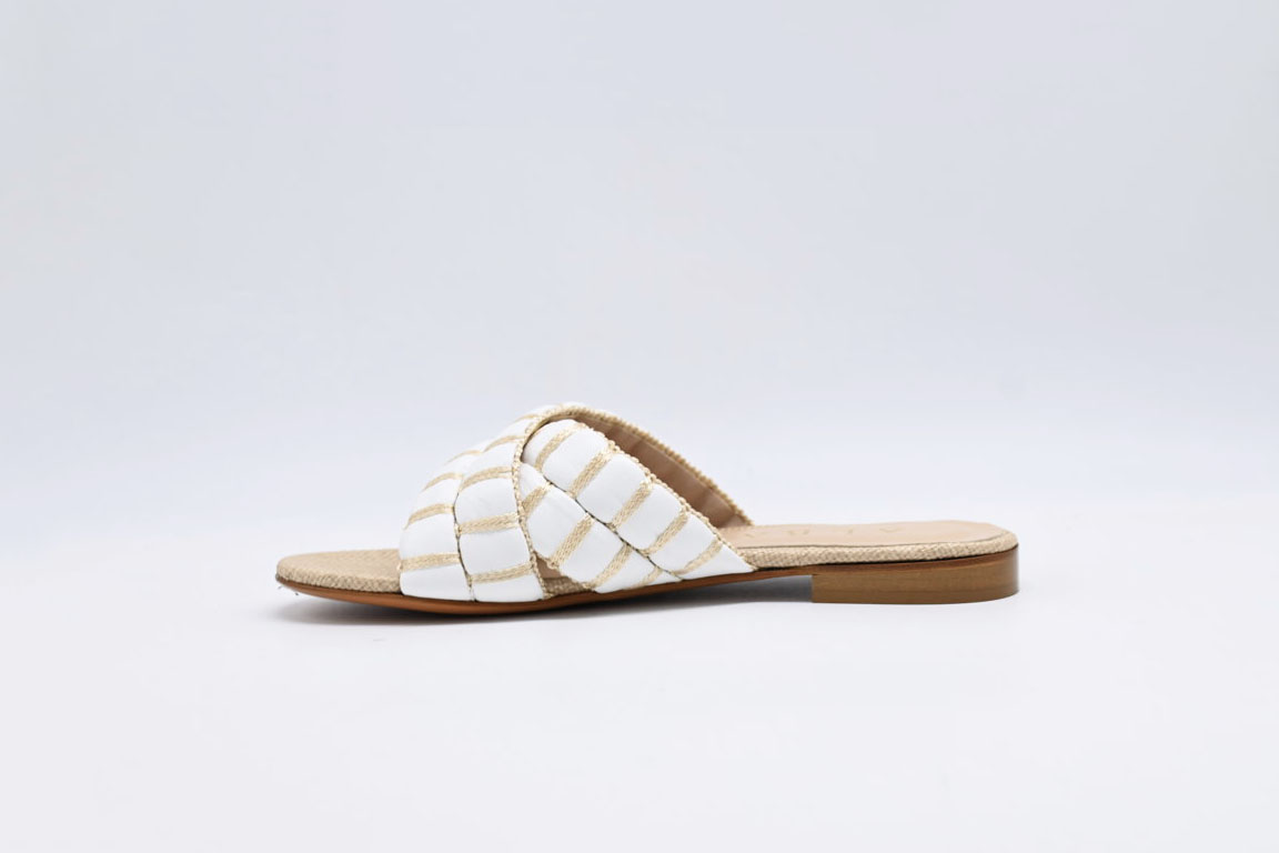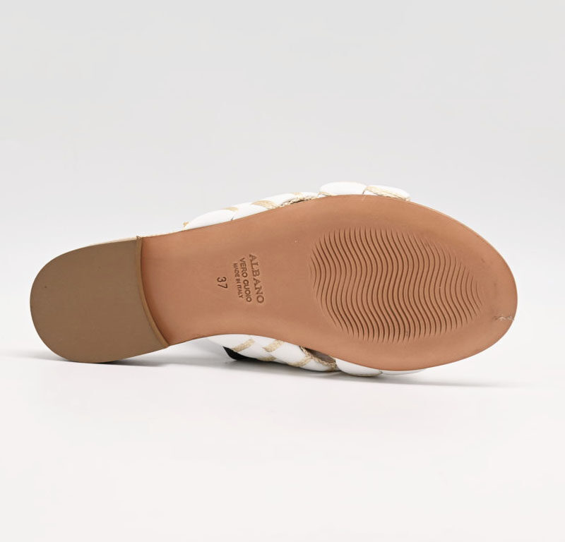 sandalo Albano in pelle bianco e raffia