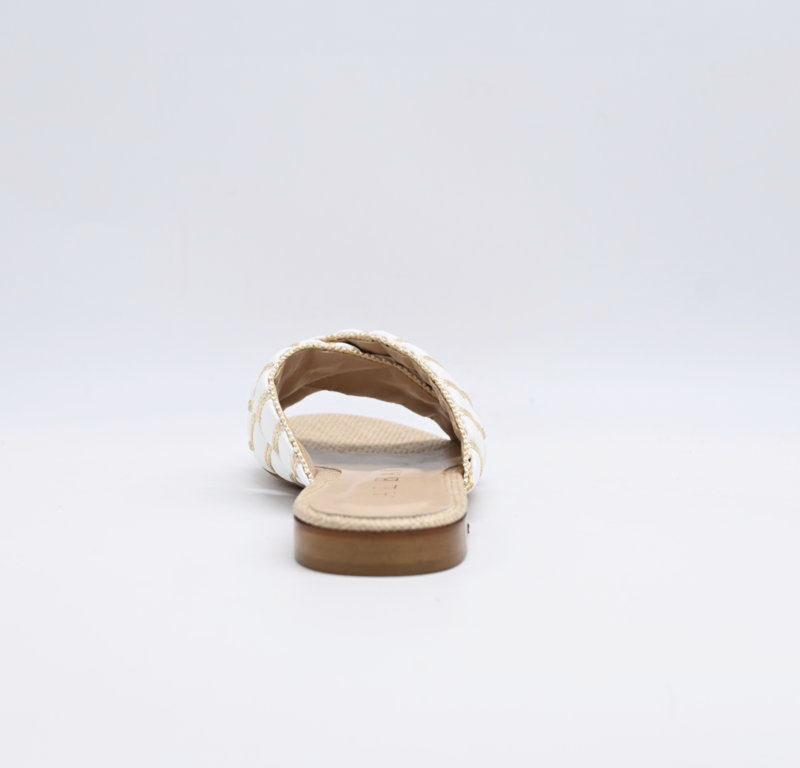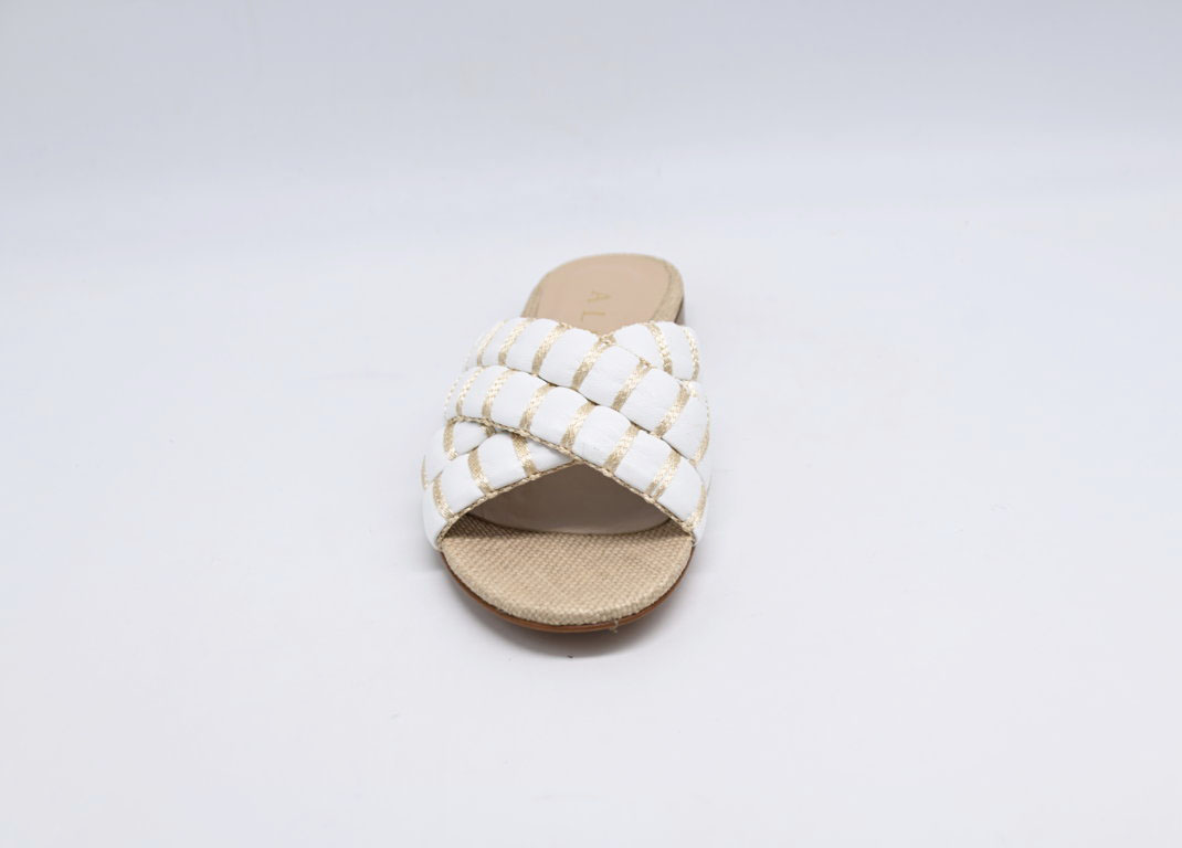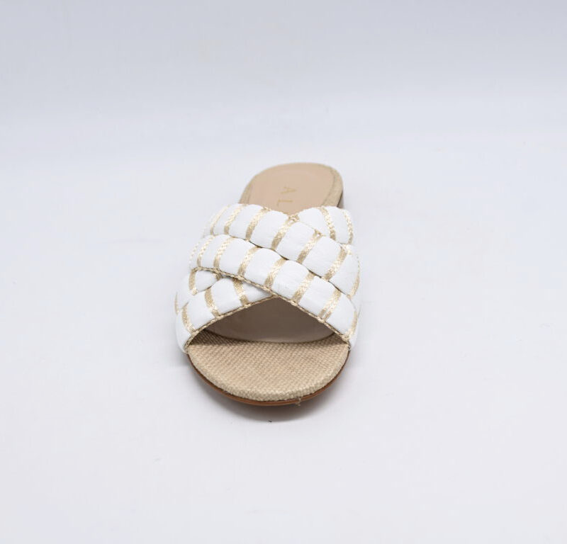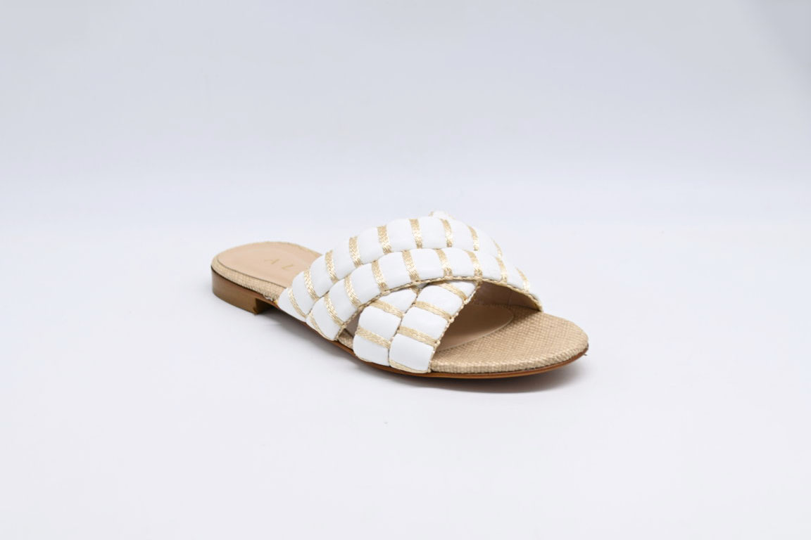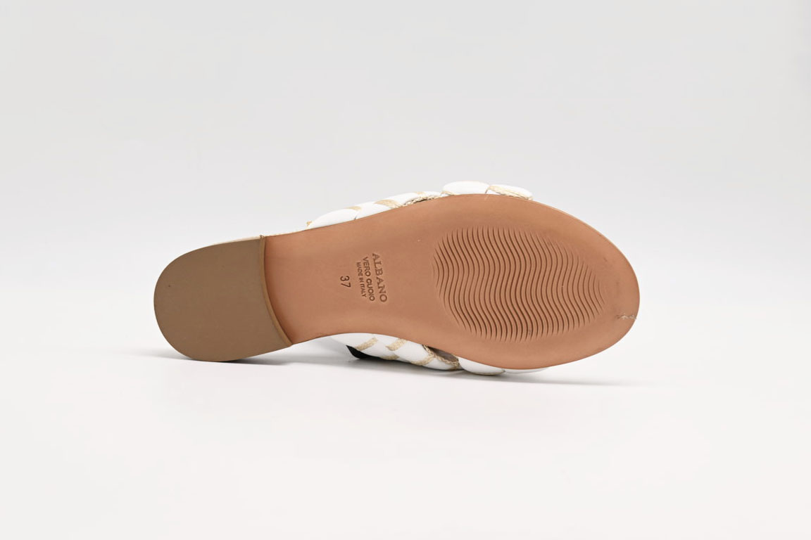 sandalo Albano in pelle bianco e raffia