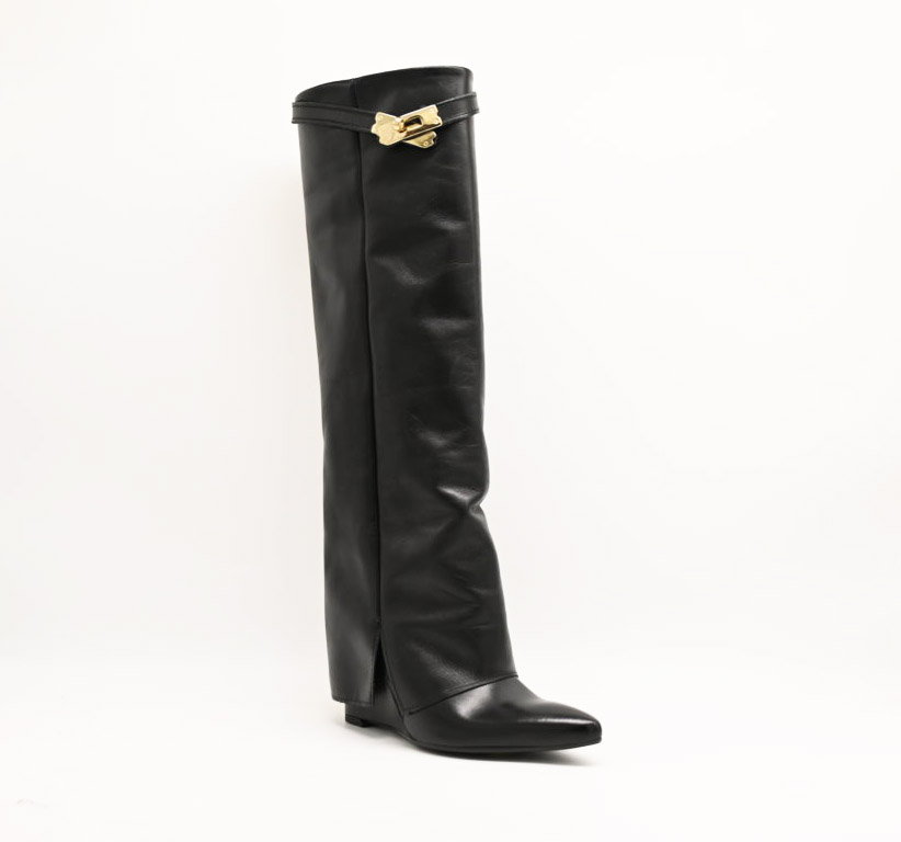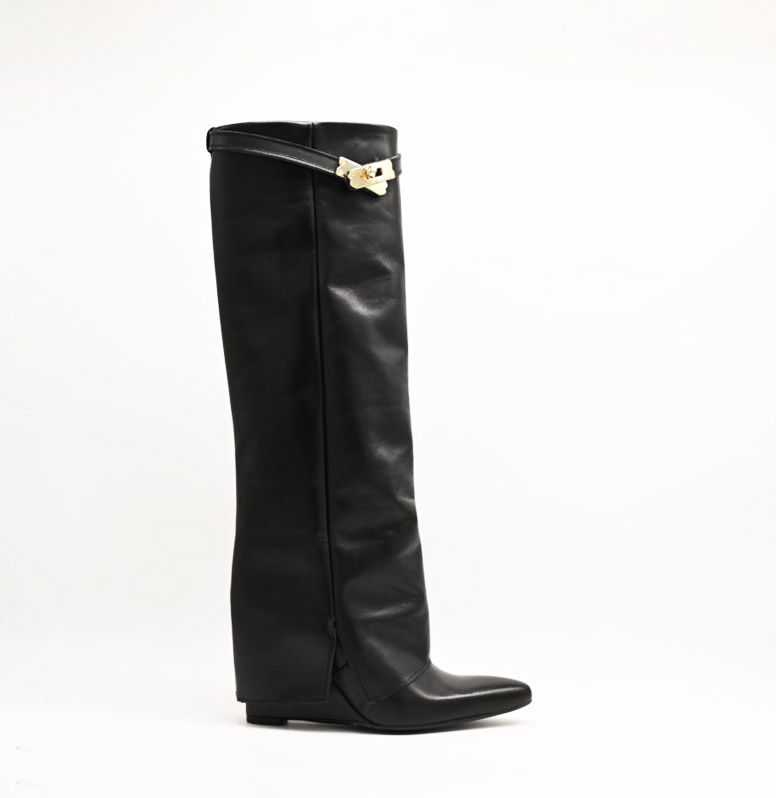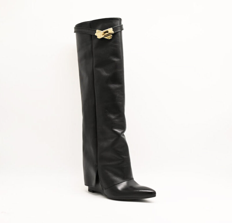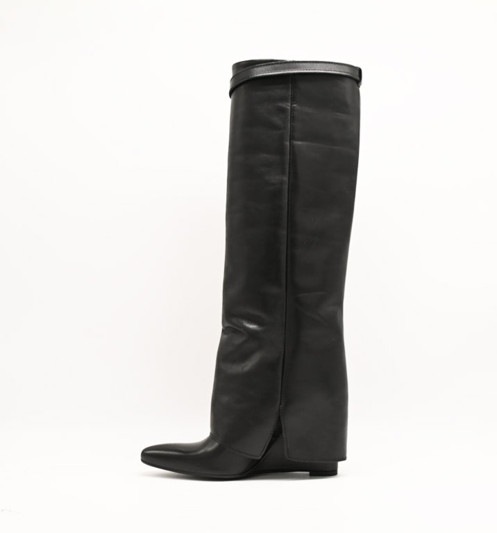 stivale the icona in pelle nero con zeppa