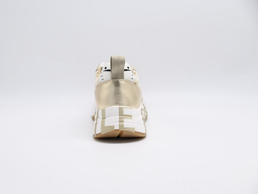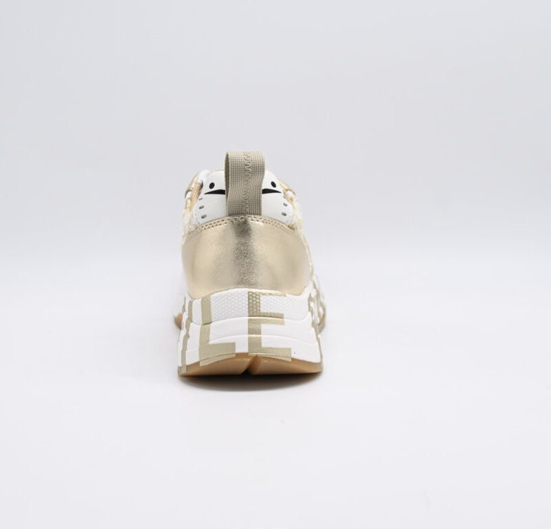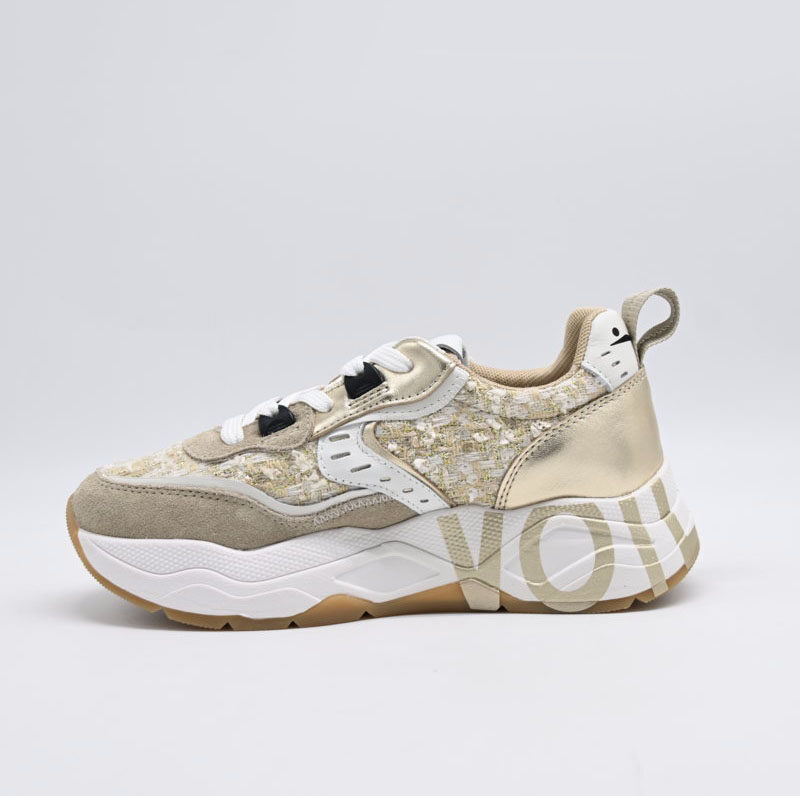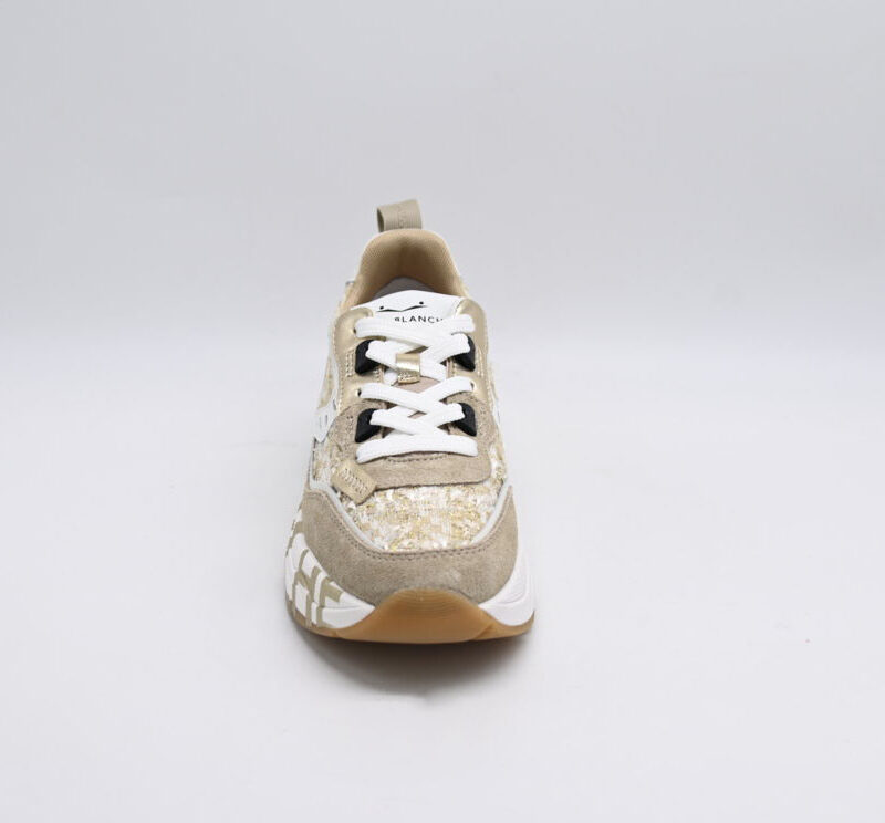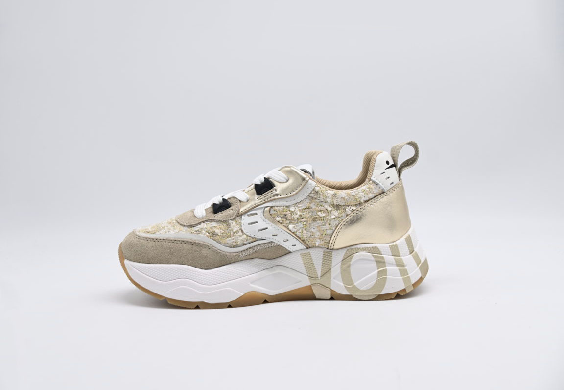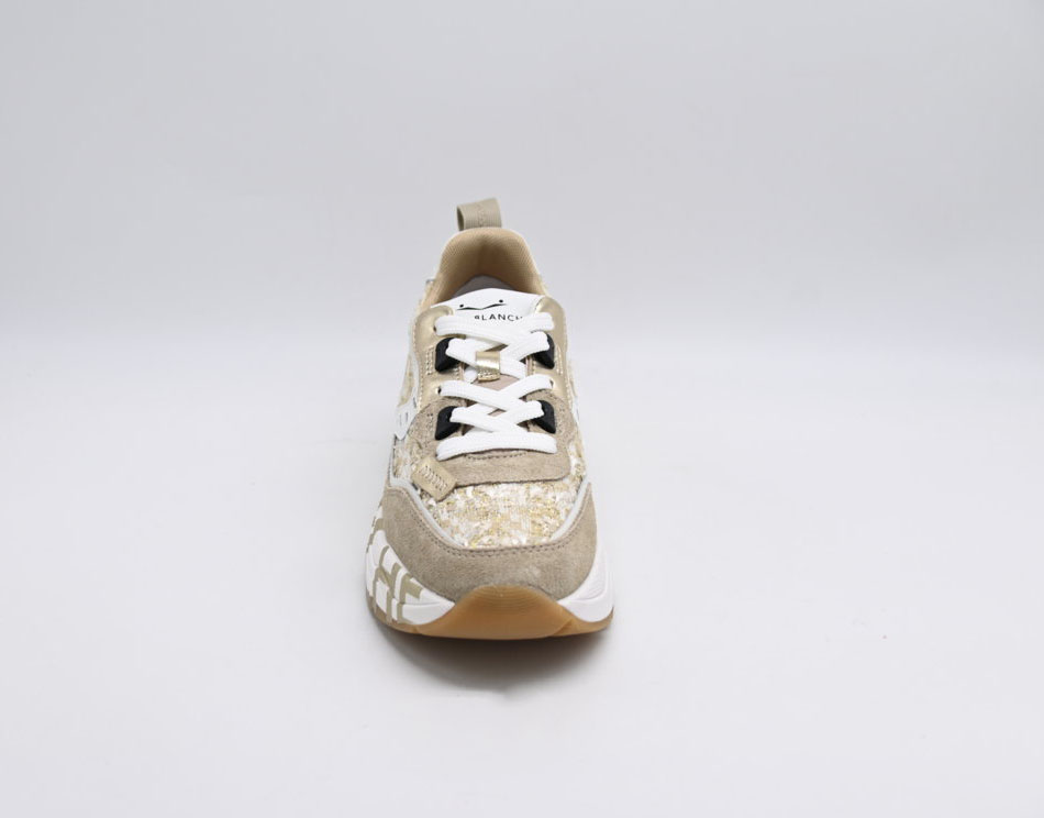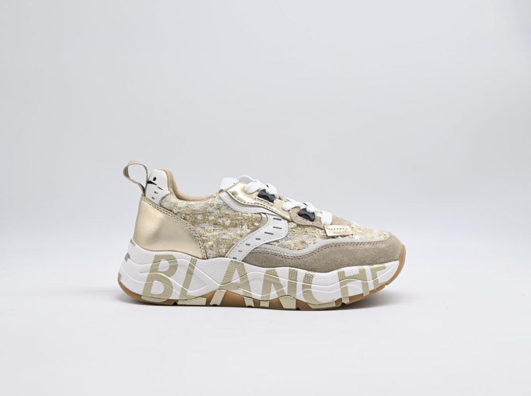 sneakers donna voile blanche in camoscio e tessuto effetto bouclé con paillette